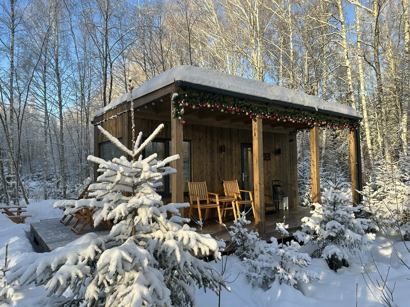 Ну и перед домиком, веранду от снега самому нужно раскидывать)