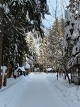 Очень красивая территория, сосны все в снегу, как в сказке, но из за сильных морозов погулять не удалось.