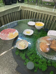 Завтрак! В первый день- вареные яйца, каша гречневая в тарелке уже с молоком, хлеб, сыр, колбаса, ветчина нарезка, все это на тарелках под пленкой. Сосиски отварные и жареные. Лимон, чеко пай. Чай пакеты и кофе растворимый.