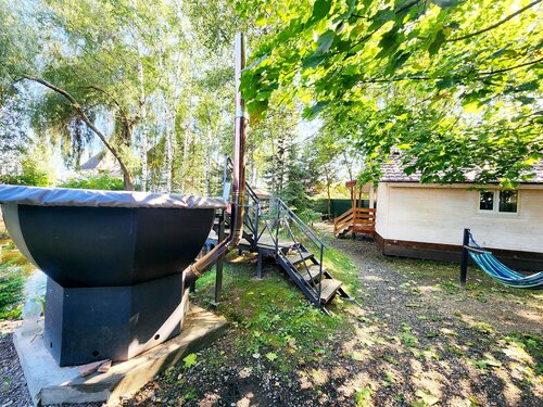 Начнём с плюсов: при выборе места вас встречает очень приятная девушка - хозяйка, все показывает, рассказывает, всегда можно договориться (кроме одного момента, о нем ниже и это есть тот самый минус). Территория большая, зелёная, есть парковка на машин 5 точно, дом большой, светлый, просторный зал (до 30 человек думаю, у нас было 40 и прям впритык все сели и танцевали только половина), есть уютные комнаты с кроватями и диванами, все кровати застелены, для диванов лежит отдельно белье (правда оно может оказаться рваным и лучше сразу сфотографировать, чтобы не было вопросов, мы это не сделали в ночи) в туалете все чистенько, уютно, полотенца лежат, принадлежности разные, кухня тоже оставила хорошее впечатление, 2 огромных холодильника, у нас прям все поместилось (тарелки, бокалы, посуда все за доп плату), мангальная зона шикарная, есть и шампуры и казан,прудик в нем и карасиков ловить, и купаться после бани, и просто с гамаков или со скамейки посмотреть приятно, баня и чан, беседка с большим столом, где можно провести время (но только молча😷потому что везде таблички на улице шуметь нельзя у нас для этого есть зал в доме, вопрос на кой мне только зал, если я беру загородный дом, чтобы была возможность провести время на природе и в доме, но на природе 40 человек гостей должны только тихо стоять иначе соседи сразу звонят и жалуются), есть большая, красивая, зелёная поляна с елками, потрясающая для проведения разных мероприятий (упс, нет она есть, но шуметь нельзя и мы не про после 23:00, а НИ-КО-Г-ДА, никак, ни в коем случае иначе что? Правильно соседи сразу звонят хозяйке, а та организаторам и просит прекратить любой шум, любую музыку. В нашем случае звонили самой невесте и это тот самый огромный жирный минус, за который я бы сняла все звезды. Потому что дом снимался для свадьбы на 4 дня. И в день активного празднования невесте позвонили 4 раза, что довело её до слез, испортило все настроение и вместо того, чтобы отмечать свой праздник и наслаждаться моментом она переживала, а не громко ли музыка из дома играет, а закрыты ли все входные двери, потому что они блокируют много шума, а не громко ли её гости разговаривают сейчас на улице, пока вышли подышать воздухом (она же для этого выбирала именно дом с участком, чтобы была возможность свежего воздуха). Нам пошли на уступки и разрешили провести церемонию на улице. Когда через пару часов провели там бросание букета и ещё через час хотели как стемнело сделать красивый коридор из бенгальских огней на нас сразу пожаловались, потому что у людей свадьба, а они слишком громко радуются (как вообще-то принято отмечать свадьбы). Можно сказать идите в зал, но в зале никакие свечки, никакие огни, ничего такого нельзя, а у нас бенгальские огни и торт с огнями это только для улицы (получается не делайте, опять вопрос зачем снимать дом на 4 дня, когда ничего делать шумного нельзя (к шумному относятся просто разговоры и музыка, даже когда на следующий день осталось человек 10 и они ходили в баню, плавали в пруду).