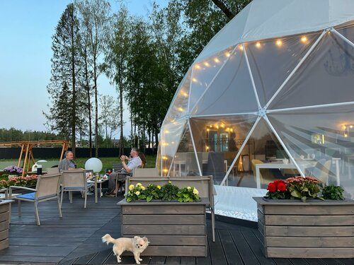 Общее впечатление место оставило вполне положительное! Сама локация, ухоженная территория, лес рядом, все было отлично, но грустно, что некие мелочи смогли оставить неприятность. Сняли глэмп ради того, чтобы наблюдать в лежа в кровати лес, но сами 5тиметрлвые окна поросли льдом и были засыпаны снегом. Ладно, если снег вот только выпал и было бы даже романтично, но там видно по ржавому снегу, что он там лежит далеко не одну неделю, прилагаю фото. Мне пришлось самому по сугробам подходить к окнам и чистить их. Роста моего не хватило, что нормально это сделать, но был бы инструмент делов там на 5 минут и посетители будут счастливы, убирается все элементарно. Далее выдали рваный халат, ну вроде мелочь, можно же заменить не дорого, фото тоже прилагаю. Ну про негатив от женщины с ресепшен на въезде не буду расписывать, может у неё просто день не задался.