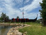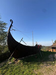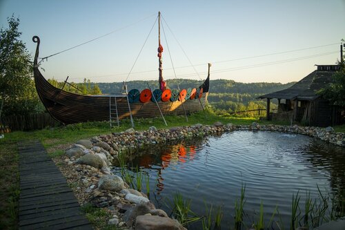 Интересное место с атмосферой викингов. Во дворе есть собаки, козы, цесарки, кролик и огромный ворон. Есть 2 домика-земянки для гостей, копии жилища викингов, корабль, здание с живым огнём, очень атмосферно. Экскурсию ведёт мастер спорта по фехтованию, рассказывает интересно, яркий персонаж, весёлый, историк по профессии, знает всё о эпохе. Учит гостей управляться с мечами и шпагами, стрелять из лука, кидать копья. Из зон роста-очень скользкий деревянный помост, шел дождь и мы пару раз чуть не упали. Также не понравилось, что бегали дети хозяев и просили выпустить собак из вальеров, возможно так деликатно давая понять, что пора сворачивать экскурсию))). Цена 2500,этих денег стоит экскурсия. Но я внесла предоплату через агрегатор экскурсий 1350 за 2х, а муж не поехал. На месте с меня сняли ещё 2400,о чем меня не предупредили, что было неприятно. Место находится в епенях, ехать туда только на машине, соответственно такси из Дмитрова стоит 700р. Снимаю только 1 звезду, экскурсовод-огонь и место необычное. Спасибо!