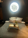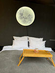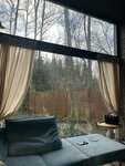 Теперь к тому самому существенному минусу - вода. Во-первых она настолько плоха, что когда набирается ванная, ее цвет ОРАНЖЕВЫЙ. Пока она течет из крана это не заметно, но при наполнении емкости это видно. Пахла по началу тухло, потом просто сильно воняло железом. Как администратор сказала у них есть фильтры, но вода богата железом. У нас дача недалеко оттуда и таких проблем нет. Возможно вода из реки рядом берется и просто очищается от песка, иначе нет идей, в чем проблема нормальнве фильтры поставить. Чтобы вы понимали, она настолько отвратительна на вкус, что полоскать ей рот после чистки зубов невозможно. Брали с собой покупную воду, но не рассчитывали, что все настолько плохо будет. Когда начпли набирать воду в ванной, через 10 минут горячая вода закончилась. Как опять же администратор сказала, у каждого дома свой бойлер и ему нужно минут 20 на нагрев, на душ обычно гостям хватает))) Вопрос, зачем тогда там ванная, видимо для красивых фото. Включили бойлер на максимум, но в итоге все равно только через полчаса снова пошла горячая вода и также быстро закончилась. По итогу пока бойлер греется, вода в ванной остывает. Тогда уж больше толка от чайника, номы уже не стали им ванну наполнять, довольствовались быстрым душем. Да и лежать в оранжевой аоде желанич не было. Бассейн уличный оказался закрыт, на сайте об этом не пишут. Чан на улице с горячей водой оплачивается отдельно и стоит 6к, как оказалось топитсч он 6 часов и использовать его можно столько же, об этом мы узнали уже на ресепшене, благо брали 2 дня. Чан - это единственная причина сюда ехать, но разумеется он не стоит аренды домика. Слишком дорого за полежать в теплой воде) на кухне ужасно неудобный кран, струя воды бьет в окончание раковины и вокруг все разбрызгивается, даже если просто помыть руки. Изза этого рядом с раковиной сильно вздутая столешница.