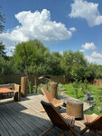 Чисто, всем хватило полотенец и постельного белья, есть наборы посуды, бокалов, холодильник , Алиса, подсветка вечерняя , баня хорошо топится ,зона для пикника.