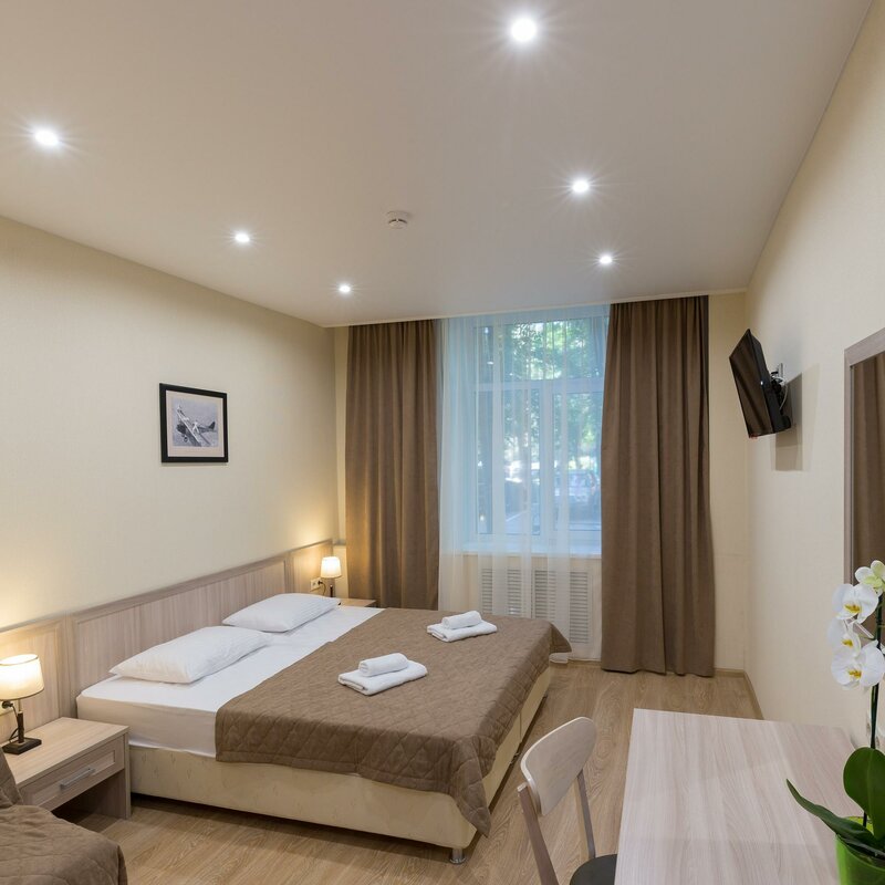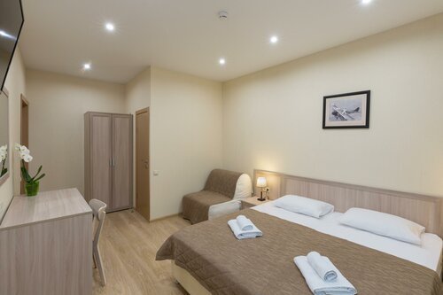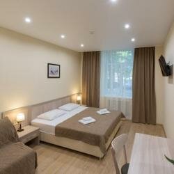 В номере чисто, белоснежное пастельное белье, в душе есть все необходимое, чистые полотенца, халаты, тапочки. Кроме этого в семейном номере есть чайник, чашки,чай в пакетиках и даже маленький холодильник. Есть кухня в коридоре отеля, где можно погреть еду, а также вода, посуда и все необходимое. Рядом с отелем есть продуктовые магазины:"Диски", "Пятерочка", "Вкус Вилл", аптеки. Станция метро "Академическая" в 10мин. Все понравилось, надеемся вернуться снова.