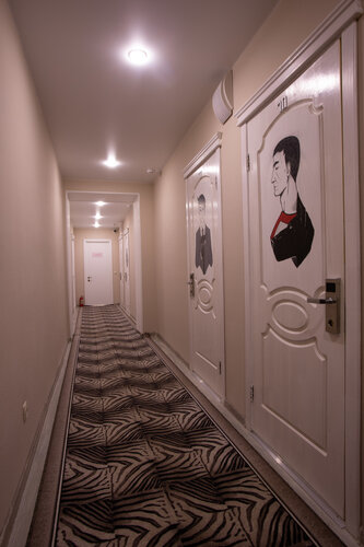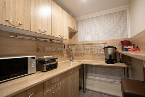 Останавливались в гостинице ,,Бегемот".Чисто, уютно. Приветливая девушка на ресепшене. Есть небольшая кухня На кухне есть посуда. Чашки, тарелки, ложки, вилки, бокалы, стопочки. Микроволновка, чай, сахар. В номере чайник, стаканы, чашки, бутилированная вода, одноразовые тапочки .