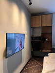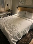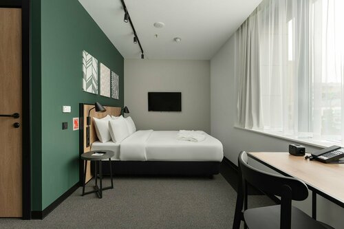 Бронировали стандартный номер с двумя отдельными кроватями на двое суток с завтраками. При заселении нам предложили поменять тип кровати на 1 большую. Мы согласились. На ресепшене спрашивают нужен ли зубной набор(т.е. в номере он не предусмотрен). Рассказали только где проходит завтрак. Больше ни о чем не оповестили. На нашем этаже было очень грязно. Везде разбросана соль с улицы(либо это что то другое, мы так и не поняли), обрывки пакетов и другой мусор. В номере нас тоже ждал сюрприз. На полу валялись салфетки для обуви (упакованные), табличка об уборке и конверт для карточек от номера от прежних жильцов. С первого взгляда непонятно заправлена кровать или нет. Как будто так тоже оставили предыдущие жильцы. Были темные пятна на белье. Впечатления сразу были испорчены. Номер симпатичный но небольшой. Если у вас много вещей-будете спотыкаться о чемоданы. В номере есть мини холодильник, чайник, чай, кофе, сливки, вода, кружки, палочки деревянные для замешивания. Телевизор с небольшим кол-вом каналов. 6-7 вешалок, тапочки, салфетки и ложка для обуви. В ванной два полотенца для рук, 2 для тела и 1 под ноги. Жидкое мыло в дозаторе, шампунь/гель для душа 2 в 1 в дозаторе, фен. Всего остального нет. Предоставляется ли оно по запросу неясно. В ванне были волосы от предыдущих гостей, резинка для волос. Дверь в душевую открывается на половину. Плитка в этом месте разбита. Человек в теле возможно в душ не попадет. Очень не продумано.