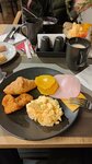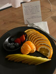 Завтраки простые, на вкус тоже средне. Но кофе вкусный. Девочки приветливые, быстро убирают грязную посуду, кладут новые приборы, а вот крошки со стола, на полу -нет. Скидывают либо просто переворачивают салфетку другой стороной. На второй день проживания принесли комплимент в номер в виде небольшой тарелки фруктов с открыткой и извинениями о долгом заселении, хотя нас заселили быстро. У нас было грязно в номере. Вроде хотели приятно сделать но ощущение как будто не нам.