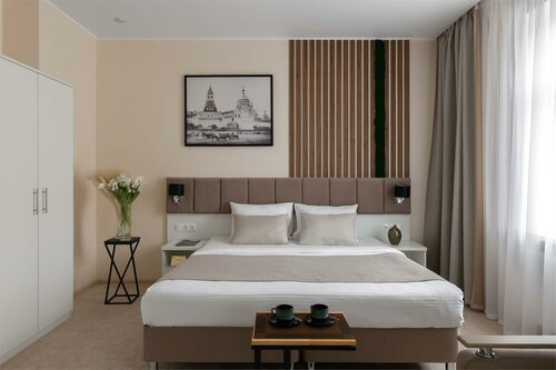 Прекрасный отель. В общем все понравилось. Соотношение цена-качество. Чисто, хороший ремонт в моем вкусе. Есть все для комфорта. Кухня, техника, посуда. Мебель отличная, постель отличная, ежедневная уборка ., есть лифт, красивый ресепшен, сотрудники очень вежливые. Заселили раньше времени. Отдельное спасибо администратору Ольге! Из недочетов- шумно, если открыть окно, рядом достаточно оживленная дорога, лучше брать номера с окнами во двор. По номеру мелкие косяки, но это уже чисто придирки. В целом очень рекомендую!