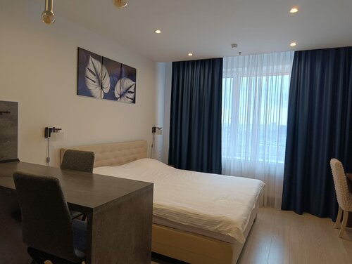 Отличная гостиница, совершенно новые номера и чисто, стильный минималистичный ремонт. Плюсы: топовое расположение, проход в метро прямо в из здания гостиницы, внизу большая фуд-корт зона и не «вредной» еды, а на любой вкус итальянская, японская, узбекская и прочие кухни. Есть 2 бара с алкоголем, цены совершенно адекватные . В этой же зоне фуд-корта супер завтраки есть, мы брали за плату. Есть лаундж с кальяном. Прямо рядом «Остров мечты», где внутри концертный зал Москва, мы ходили на концерт прямо из гостинцы, быстро и удобно. На метро очень быстро добираться в любое место. Рядом есть и супермаркеты. В самом номере есть все что надо: полотенца, утюг, гладильная доска, вся посуда и посудомоечная машина, стиральная машина и чайник, чай и кофе, заварник кофе, в душе одноразовые шампуни и т.д., фен, плита, полноценный холодильник . Если надо то можно там и готовить и стирать. Но для нас классная зона фуд-корта решила все вопросы с питанием. Персонал пошел на встречу и нас заселили раньше заявленного времени. Из окна классный вид с 19 этажа. Минус был только что нет никакой навигации с указателями где находится гостиница и нет ресепшена, сотрудник приедет и встретит. Но это не критичные минусы. Поэтому гостинице смело ставлю 5 звезд и с удовольствием приедем в эту гостинцу еще!