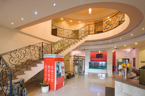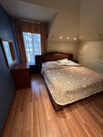 Плюсы- удобно, просторно в номере, очень тепло, есть кондиционер, телевизор, большая двухспальная кровать, шифоньер, вешалка для вещей, столик, холодильник, по просьбе дали электрочайник и кружки в номер,посередине комнаты перегородка, за ней диван для ребенка. Диван правда разваливается уже. В номере довольно чисто, по просьбе убираются, в душе есть фен, правда очень слабый,через минуту выключается пока не остынет. Имеются мыло, шампунь и гель для душа.В номере есть несколько зеркал, это важно для девушек, в душе перед раковиной зеркало с подсветкой,удобно делать макияж. Ну вот и всё, пожалуй.