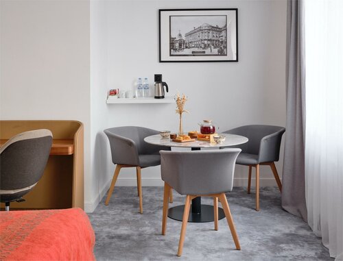 Потрясающий отель, жили сутки с мужем на 10 этаже в 1003 номере. Заселили раньше времени без доплаты (в честь дня рождения мужа), номер чистый, уютный, работает кондиционер, тв, душ, утюг, фен, на ресепшене дали косметические наборы, в номере есть мыло и шампунь. Матрас и подушки-отдельная любовь , аксона. На завтрак был шведский стол (еды много-сырники, яйца, омлет, блинчики, овощи, фрукты, кофемашины, десерты, булочки, разные виды сыров и колбас, мы объелись, завтрак с 7 до 11). Очень советуем отель, от метро Бауманская минут 5-7. Обязательно вернёмся. Спасибо