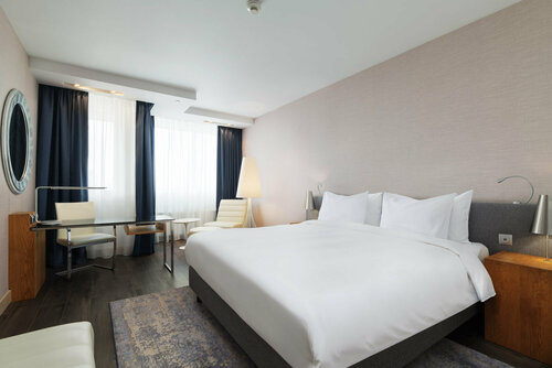В отеле «Radisson Blu Белорусская» в номерах есть двухспальные или две односпальные кровати, принадлежности для приготовления чая и кофе, бесплатный Wi-Fi, зеркало с увеличением и фен. В люксовых номерах — спальная и гостиная зоны, ванная комната с тропическим душем, халатом и тапочками, кофемашина Nespresso.