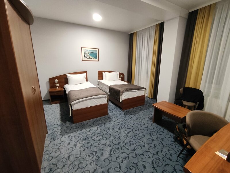Хороший номер студия302 . Очень удобная кровать, по 2 подушки нормальные на человека!!! В номере капсульная кофемашина с 2 запасными капсулами,чай,2бут воды. Халаты хлопок из вафельной ткани,удобные ,ходили в них в спа, тапочки одноразовые совсем минутные😁.Имейте ввиду куллеров нет, питьевую берите . спускались в спа зону, небольшой бассейн с чистой водой. Парная работала плоховато,было холодно, но умелые руки мужа немного починили и 2 часа пролетели отлично, никого не было кроме нас ..прогрелись, покупались.
