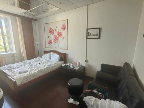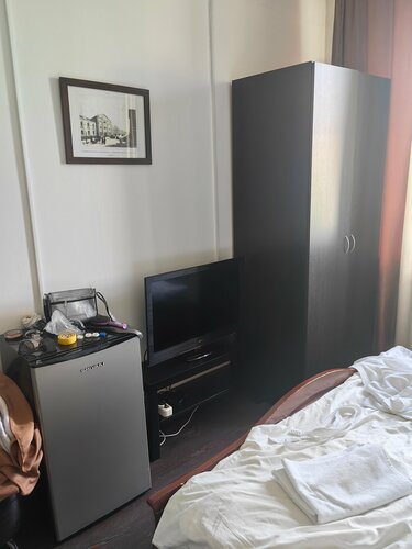 Брали номер Эконом на двоих на ночь. В номерах довольно грязно (пыль на полках, разводы и грязь на стенах), мебель старая, но есть чайная пара, салфетки, чайник и вода. Гигиенических принадлежностей не было, только полотенца и халаты не первой свежести. В номерах Эконом нет своего туалета и ванной. Общая ванная ужасная (грязно, темно), ощущение, будто бы за ней вообще не следят: душевая кабина в налёте, плесени, стоит грязный табурет для вещей, очень мало места. Общих туалетов два, в целом нормальные, но опять же, возвращаться туда не очень хочется. К Интернету подключиться не получилось. При заселении возникли какие-то проблемы, администратор не знала, когда мы должны заселиться и сколько заплатить, к тому же материлась при нас. Если хотите пожить в приличных условиях, лучше брать более дорогие номера (Комфорт или Люкс), либо выбирать другой отель.