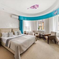 Номер с виду нормальный, но при детальном рассмотрении оказалось, что спинка кровати сломана, отвалился карниз штор, напольное покрытие прям совсем уставшее, да и на стульях такие пятна, что страшно сесть.