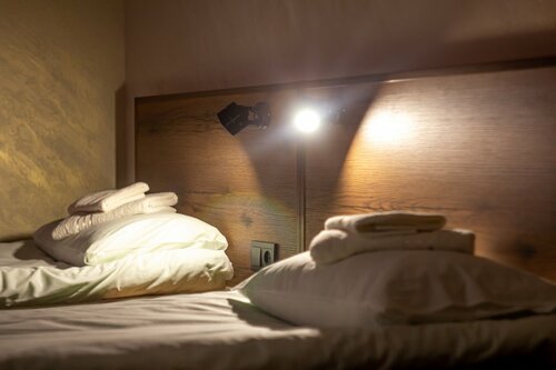 В номере мягкие матрасы, полотенца, тапочки, и телевизор со смартом