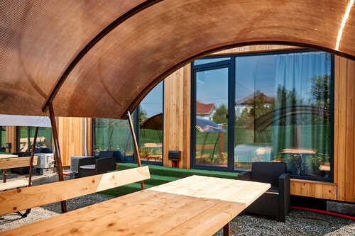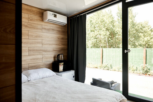Забронировали номер в Траве только потому, что уже приехали в город и поселиться было негде. Началось всё с того, Заплатили 9 тыс. руб. и плюс залог 5 тыс. за номер 9м2. Сразу предупреждают, что за пятнышко на постельном штраф 3 тыс руб. Приехали голодные,купили у них решётку и плиту, сделали шашлык с видом на зелёный забор. Номер из себя представляет коробку с ледяным полом, кушеткой в виде стула и кроватью под потолком. В коробке этой холодно и очень мокро, всё постельное бельё влажное, головой упираешься в потолок, когда сидишь, передвигаться надо ползком, окна нет, только прозрачная дверь. На так называемой уличной кухне старые вонючие тряпки для мытья посуды и протирки стола, жидкость для мытья посуды налита в одноразовый стаканчик, нож погнутый и сломанный кончик. Ладно, пошли на пляж, песок серый с мелкой галькой, в воде камни. Был шторм, заходить в воду побоялись. Бассейн на территории небольшой, оккупирован детьми. Мы поняли, что ночевать мы в этой коробке совершенно не желаем, мучиться там в духоте или холоде (если включить кондиционер) на мокрой кровати, не имея даже возможности нормально заняться плотскими удовольствиями. Пошли сказали на ресепшн, что мы уезжаем. Прибежала к нам администратор и набросилась, как шавка, с агрессивными выкриками, что нам высылали видео, как выглядит номер (нам действительно показали, как включается пальцем подсветка на зеркале, это же очень важно в коробке) и мы знали, куда мы едем, и что деньги нам не вернут. В итоге за два часа пребывания в этом колхозе мы заплатили 9 тысяч рублей. Почему администратор проявила такое крысятничество и не отдала 4500 ₽ по справедливости и по совести - остаётся вопросом. Они могли бы уже оставить себе половину денег, мы всё-таки сходили там в туалет и взяли одно полотенце для рук, но мы провели там 2 часа!!! Почему было не отдать нам вторую часть денег????