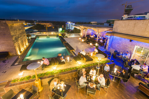 Отличный отель высоко уровня , на крыше небольшой бассейн , вечером проходят вечеринки . Есть спорт зал и сауна . Отличный ресторан и бар. Вежливый и адекватный персонал.