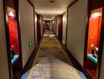 2) Отель производит очень приятное впечатление. Нет излишнего пафоса, и нет намека на подчеркнутую простоту. Солидное фойе, коридоры устланы мягким покрытием, в номере вообще не слышно проходящих мимо гостей. В отделке преобладание красного дерева и красного мрамора. Коридоры облагорожены нишами с подсвеченным декором. Я жил в стандарте. Номер просторный. Зона для чая, с тумбой для продуктов. Сейф, холодильник, в тумбе под телевизором. Рабочая зона со столом для компа, настольной лампой и даже набором канцелярских принадлежностей. В другом углу у окна кресло со столиком и торшером для любителей выпить чашечку чая или бокал игристого с видом на вечерний город. Очень все продумано и уютно. Над каждой тумбочкой и столиком розетки и разъемы USB, подзарядные устройства не пригодятся.