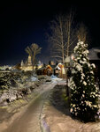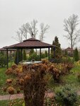 На территории — банный комплекс с русской баней на дровах, комнатой отдыха, санузлом, мини-кухней, парной, душем, устройствами для обливания, горячей и холодной купелями с аэромассажем, фито-купелью и уличной купелью на дровах с подсветкой.