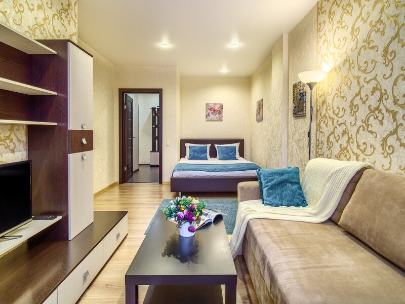 Хорошие апартаменты, есть все необходимое, постельное белье, полотенца, посуда, фен, утюг. Чисто, уютно, приятный интерьер, жили вчетвером. Расположение хорошее, новостройка. До центра 14 минут на такси. Рядом магазины и торговые центры, до всех основных достопримечательностей города не более 4_5 км. Спасибо!