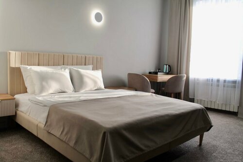 Остановились на 2 ночи, 2 взрослых и ребенок. В номере: 3 кровати, стол, 3 стула, тумбочки, шкаф, холодильник, чайник, телевизор.