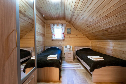 Замечательное расположение. Коттедж был прямо на берегу озера. Можно купаться с берега (трава, песка нет), можно с пирса. Есть сап-борды, катамараны. Озеро чистое, есть рыба, удочку можно взять напрокат. Прямо на территории базы растёт земляника, черника, немного малины, лисички. Дом удобный, есть все необходимое. Единственный минус - коттедж немного подуставший. На территории базы можно прогуляться, с коляской тяжеловато, но можно. Детская площадка маленькая, но надувают большой батут. Очень отзывчивый персонал