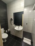 Из минусов: отель на окраине, среди автосалонов на территории парковки. Снег не чистят, а мы были без машины, пробирались через сугробы, все ботинки засыпало снегом. При этом нас из окна первого этажа разглядывали две женщины и что-то обсуждали, когда мы зашли, одна из них скрылась. При оформлении, подозрительно глядя на мою жену, оставшаяся на ресепшене сотрудница сказала, что одного паспорта достаточно. Ключ от номера не дали, сказали, что можем его потерять и так для всех удобнее. В прихожей только две проволочные вешалки, на одной повесили сохнуть шубу, на другую платье жены, моя одежда расположилась уже как придется. В душевой плитка на полу конечно красивая, но мы чуть не навернулись, скользко. Душ вообще обидел мою жену, вода горячая видимо из накопителя, так как хватает только на одного человека и начинает идти не сразу. Матрас на кровати жёсткий, жена пять раз просыпалась ночью. Подушки всего две, их недостаточно, так как на кровати нельзя сидеть, откинувшись, несмотря на то, что на стене в изголовье есть кожаный задник. Ночного светильника в номере не было, пришлось оставить свет в прихожей. Слышимость в номерах хорошая, утром слышали, как горничные обсуждали других постояльцев, кто где курил или открывал окно. Тут нам стало некомфортно, хотя мы не пьем и не курим, но открывали окно, чтобы проветрить. Вот такие "Истории")