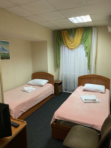 В номере чисто,тв холодильник, кондиционер.Достался одноместный у лестницы, утром уже услышал как ходят. Ещё вода плохо уходила в душе, и как будто протекает поддон или слив, на полу лужица. Ну а так в общем довольны остались!