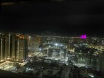 2. Вид и окна: Мы жили на 22 этаже и очень хотели снять красивый рассвет. К сожалению, окна оказались грязными снаружи, плюс они заклеены скотчем и промазаны герметиком (видимо, наглухо). Рассвет сфоткали, но через легкий "винтажный" фильтр. Проветрить тоже не получится.