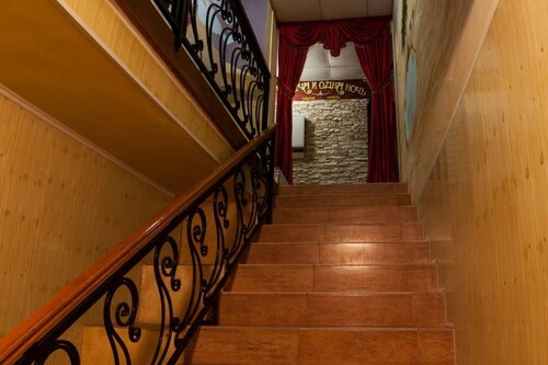Сама гостиница находится где-то в самом углу среди автосервисов. Нашли, позвонили в первую дверь. Через пару-тройку минут дверь нам открыли. И уже с лестницы начинаются приколы: надо надеть бахилы. WTF! Вы серьезно? Бахилы? Без них нельзя! В гостишку не пускают))
