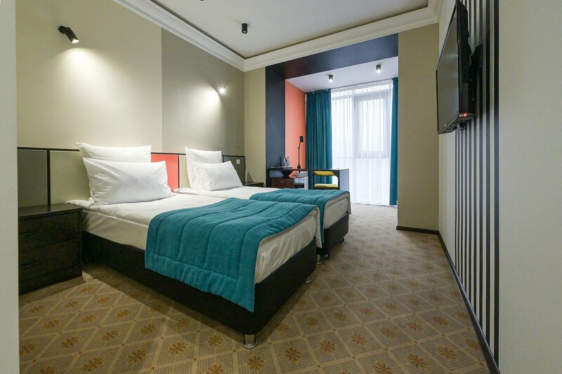 - очень чистый номер, есть халаты, тапочки, все косметические принадлежности. Мой номер выходил на ул.Волгоградскую, поездов не слышала вообще;