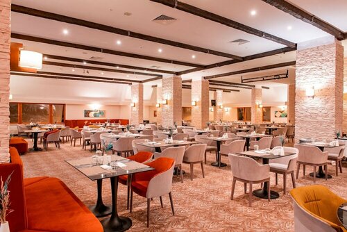 Отличный сервис, вкусная еда очень, кухня европейская с элементами местной кухни. В ресторане официанты приносят воду, кофе и напитки. Отель работает по системе FB +( здесь спиртные напитки в стоимости на обед и ужин ) Уборка номеров и пополнение минибара(вода,кола,фанта,пиво) каждый день. Воду, кофе, чай и принадлежности для ванны пополняли по необходимости каждый день. Отель имеет прокат лыж и выход на подъемник. Открытая терраса работает в хорошую погоду, где можно выпить кофе или глинтвейн и продолжить кататься или отдыхать на свежем воздухе. Вечером в лобби проходят диско с живой музыкой. Есть бассейн, сауна и тренажерный зал. На ресепшн работают менеджеры, которые говорят по- английски и всегда стараются помочь. Во время нашего пребывания была менеджер Ася, которая говорит по- русски и тоже всегда готова была помочь. Рекомендую, отличный отель. Лыжный курорт рекомендую для новичков и семей с детьми. И для любителей спокойного катания, без риска. Подъемники бугельные. Очень красивая природа и чистый воздух, так как отель находится в природном заповеднике.