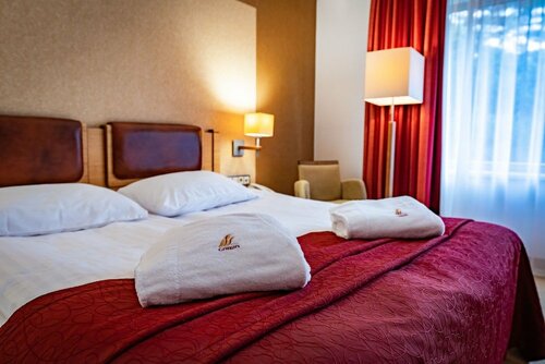 В гостинице есть ресторан, бар, тренажёрный зал, сауна, конференц-зал. И вы наверняка захотите отдохнуть у бассейна — он тут тоже есть. Причём крытый. Море тут близко — до него всего 800 м, поэтому легко можно планировать пляжный отдых. Есть возможность взять напрокат велосипед.