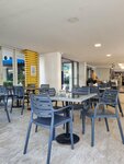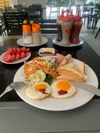 Возле отеля есть ресторан с морской кухней - видимо очень популярный (надо бронировать за сутки), макашницы ну и остальное, действительно, дальше находиться. Обменник, 7 eleven и т.д. Пляжа нет - просто чистый берег, шезлонгов нет, да и не купается здесь никто - вода... но,на крыше (на 8 этаже) есть бассейн, шезлонги и мини спортзал. Зелень там отсутствует. А так пойдёт!