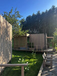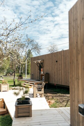 На территории есть сауна, солнечная терраса с уличной мебелью, бесплатный мангал и дрова. Для детей оборудована площадка с качелями, можно поиграть в дартс и бадминтон.
