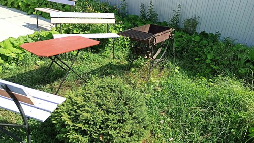 На улице несколько беседок, я бы даже сказала полноценных и очень уютных зон отдыха. Мангальных или барбекюшных. Они оборудованы всем необходимым. Кстати, забыла уточнить. В доме везде есть москитные сетки и плюс, на всякий случай, фумигаторы. Ровно как и в беседках. Это радует. В шаговой доступности магазины, недалеко пиццерии и кафе. 15 минут пешком - и вы на Плещеевом озере!