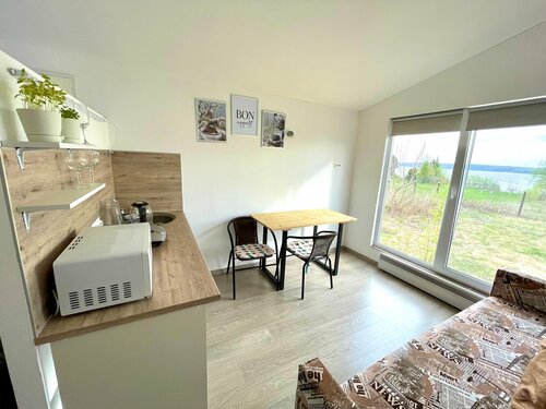 Фото зимой или когда мало листьев. Пляж НЕ 1 линия: выйти на улицу, пройти по ней, свернуть вниз, 5-7 мин. Посидеть у домика с видом невозможно - деревья.