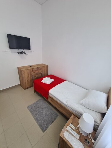 Для лета в номерах нет кондера, пишут что когда то в будущем поставят. Есть холодильник, фен, душевая кабинка. Матрасы на пружинах с тонкой прослойкой. Пружины и прутья чувствуются спиной что для такой гостиницы странно. Я понимаю для хостела с койкоместом - да. Нет чайников, но руководство нашло выход и поставили кулеры на этажах, в которых сломана подача горячей воды) но чинить пока не собираются, предлагая брать кипяток либо в баре или ресторане. Кофе американо на ресепшен 120р. Завтрак с 8 до 10 включен но скромный, не шведский стол. Омлет или каша с чаем и ломтиком хлеба. Сделайте или шведский стол за доп плату или поднимите стоимость проживания и расширьте меню. Народ на такие завтраки пойдет, ибо один омлет с чаем для мужчины это все же мало. Хоть и пишите что можно дополнительно заказать из меню завтрака, да только кто бы об этом сказал? Нет информации ни на столах ни на баре меню, ни мармитницы ни оформленной витрины, выпечки на баре нет. Мы бы и рады заказать но как и где? Упущение. В ресторане комплексный обед за 350 до 15:00, а для ужина не хватает более ходового меню. Только гриль меню и гарниры с 2 супами. Посредственно. Теряете прибыль. А так рядом есть магнит и пятёрочка. Вай фай отсутствует, аргументируя регистрацией через паспорт или госуслуги и сохранностьюю персональных данных. Странно, в ресторанах, гостиницах, парках, общественных пространствах и прочее проблем с безопасностью авторизации не возникает. Видимо не хотят предоставлять доступ. В 16 номере унитаз шатается вперед назад, нужно подтянуть. На комоде под телевизором у 2 ящиков отваливаются фасады, нужно подтянуть мебельный крепеж. А так раковина, душевая кабинка исправны. Холодильник работает хорошо, температура в нем регулируется. Телевизор работает.