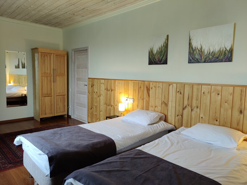 Чуть ли не лучшее место, где я была. Серьёзно. Очень доброжелательный администратор, отвечала на все мои вопросы, даже дурацкие😁 при входе в дом нужно разуваться, можно взять тапочки, можно босиком. В доме очень чисто. На входе есть полочки и сушилки для обуви, зонты, ложка. Лобби просто прелесть с шикарным видом на пляж и сопку. Номер чистый, просторный (прям просторный), есть стол, стул, холодильник, большая кровать с двумя одеялами, кресло, зеркало, шкаф, телевизор. Вид из окна такой же шикарный. У меня был персональный санузел, но в отдельной комнате. Это не очень удобно. Санузел идеально чистый, хорошее мыло, шампунь, гель для душа, зубной набор, фен, 3 полотенца. Сам дом стильно обставлен различными лампами, камушками, картинами - очень уютно, полы тёплые, топят хорошо. Я даже с открытым окном жила. Завтраки не очень разнообразные,но, но правильные и сытные, готовятся за 5 минут. Фильтр-кофе просто божественный, я бы его сутками пила. Есть ещё минус: отель находится на сопке, подъем очень высокий (особенно, если решите идти по прямой). По кругу дома продолжаются строительные работы, но на комфорт это никак не повлияло. В целом, 9,5 из 10. Хочу вернуться туда.