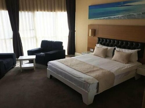 Здесь созданы все условия для комфортного проживания — есть кондиционер, холодильник, телевизор, фен, утюг, сейф, отопление, терраса, мини-бар. Уборка — по запросу.