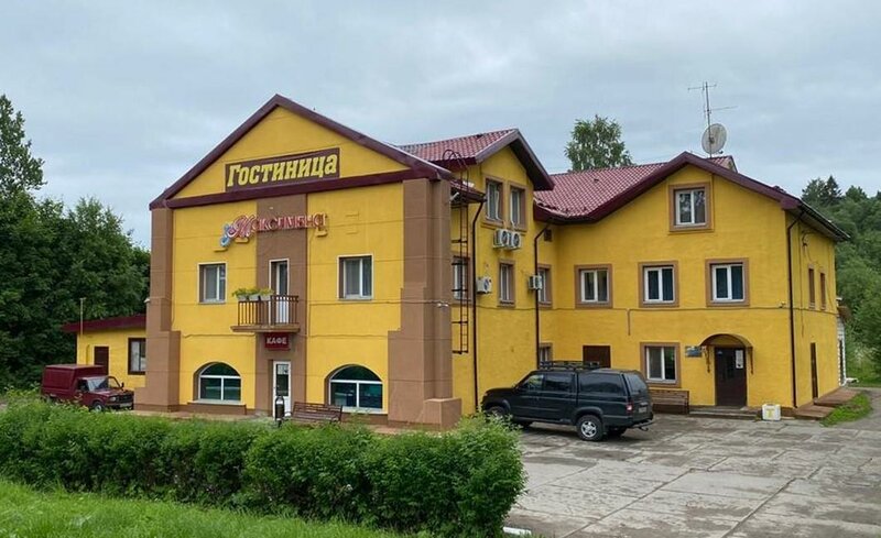 Гостиница на окраине города, до центра далековато. Рядом магазин, ассортимент так себе. Соседняя дверь с магазином кафе (одно название), но поесть можно.