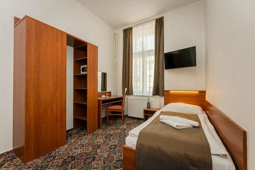 Отель спасает его расположение в центре Праги-1. Очень удобно. Пешком до всех достопримечательностей, рядом метро, трамвай, торговый центр до 22:00, Билла. Для тех, кто в отеле только спит ( а что там ещё делать?). В номере холодильника нет, микроволновки нет, тапочек нет, на полу ковролин, за кроватями пыль, соседей слышно хорошо, но после 12 ночи вроде тихо. Мусор забирают каждый день. У меня в номере было темновато. В ванне было холодно ( был в ноябре), в комнате отопление есть. Вай фай у меня в номере был. Завтрак включен с 7 до 10, если экскурсия рано и не успеваете- за день закажите сухой паек с собой ( мне дали воду, 2 бутерброда, булку, джем масло). Баланс цена/ качество удовлетворительный, особенно учитывая местоположение.