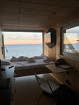 4. Сам домик. Во первых это не отдельные глэмпинги , это просто 6 номеров в квадратном здании не очень эстетичном снаружи( прикреплю фото) , номера находят друг от друга за тонкой стеночкой. У нас был двухэтажный номер с ванной , на первом этаже кровать с окном и кухня, на втором зона с ванной и сауна , довольно просторный таунхаус , вид однозначно на 10/10 и я считаю , что это место для того , чтобы делать красивый контент подходит на 100% , даже есть штатив внутри, в общем все сделано для этого , но дальше опять вопросы , почти все за доп плату , в номере есть 2 пакетика чая и вода в кувшине, из косметики гель для душа , капсула для кофе машины 200 рублей, набор с шампунем тоже допом, ну и все остальное, это конечно тоже написано на сайте)) спросила пульт от кондиционера , на что мне сказали «в связи со сменой сезона пульты убрали» , я говорю, что хотела бы теплый воздух включить так как замерзла , в ответ получила «мы повысим вам температуру», к ночи стало очень жарко , но выяснилось, что вы никак не можете сами регулировать температуру внутри дома, это делают дистанционно , нужно все время видимо просить, окна также не открываются , из плюсов, ванна большая и хороший напор, там правда очень комфортно лежать с видом на озеро , вода не заканчивается как обычно в загородных отелях бойлеры и горячая вода ограничена, тут такого не было , кровать тоже удобная !