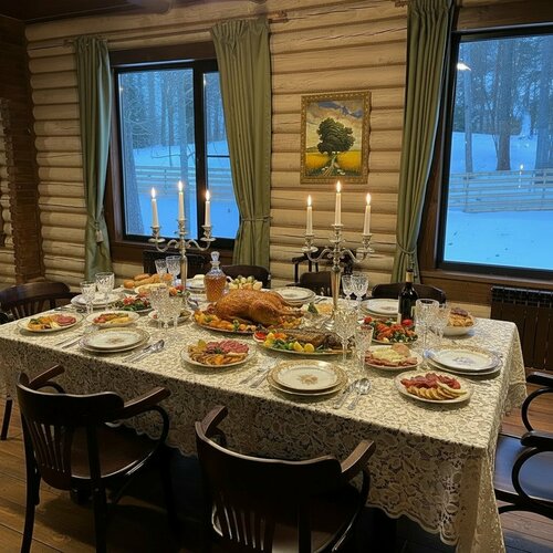 В усадьбе есть оборудованная кухня, где гости могут самостоятельно готовить пищу. Это добавило ощущение домашнего уюта и свободу в планировании своего дня. Отсутствие ресторана не стало проблемой, а даже придало отдыху особый шарм.