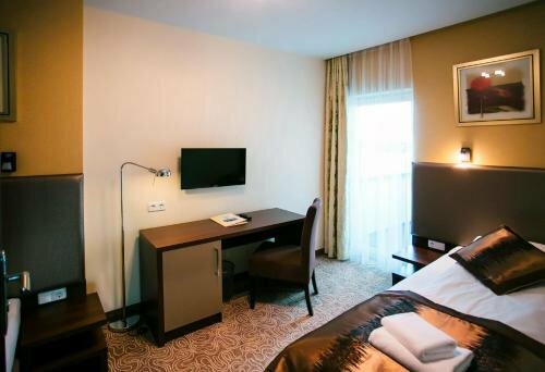 В гостинице есть ресторан, бар, тренажёрный зал, сауна, конференц-зал. И вы наверняка захотите отдохнуть у бассейна — он тут тоже есть. Причём крытый. Есть возможность взять напрокат велосипед.