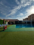 Пока начну с того ,что уже есть и надеюсь будет ещё лучше. Аэропорт. По прибытию всё очень организовано,не смотрят на нас как на кусок мяса львы,очень спокойно,провожают,ориентируют,даже дали сим карты бесплатные каждому,мы пока их не активировали. Встречает гид прекрасная русская девушка,провожает каждого с водителем. Водители все как с иголочки,брюки белые рубашки,галстуки,помогают даже нести чемоданы. Везли нас на минивене,как белых уважаемых людей,Валера даже сидел на переднем сиденье. От Дубай час езды,водитель оказался шустрый,потому что другие жаловались,сто ехали по два часа,где они лазили не знаю. Двери все открывает особенно девушкам,чуть ли не руку подают. На крыльце нас встречал уже человек чтобы забрать чемоданы,нас к ним не подпускали. Все супер приветливые и уважительные,улыбаются. Отдали документы ,взяли с нас налог как и говорилось 90 дирхам за все дни. Кстати деньги я поменяла в аэропорту у приятной девушке в обменнике. Курс у них во всех отделениях одинаковый,поэтому не обманут. У ресепшена нас встретили со стаканом сока,апельсиновый,у них очень вкусный. Приятно. Попросили присесть подождать. Ну минут 10 наверное и нас посадили в лифт нажали нужную кнопочку,наши чемоданы поехали отдельно. Номер отличный,уютный как дома,да немного есть побитая мебель,но в общем отлично. Большая кровать,чистейшая белая приятная постель,в душе всё работает,каждый день приносят новые наборы гель,шампунь,бритву,лосьон для тела, шапочку,расчёску,зубные щётки. Убираются очень хорошо. Во всём отеле пахнет вкусно. Всё чисто,блестит золотом. Каждый день оставляют чай,кофе, сливки,сахар,воду. Окна не окрываются в нашем номере,может сломано, потому что у других открываются,ну и ладно. Кондёр не включаем,не люблю. Вид из окна у нас на город,но шума не слышно,они не сигналят,и отель находится как бы на горе,поэтому дорога не мешает. Утром слышно мечети,тоже не напрягает. Ресторан. Там есть русский официант,это так приятно,потому что тут в основном на английском все говорят. В ресторане чисто очень,столы и стулья как у царей,все резные, золотые,пахнет вкусно. На завтраки соки,кофе,чай,яйца, омлеты,блинчики пекут,сосиски вкуснее чем в Египте, фасоль,хумус( понравился) картофель по деревенские,какие-то блинчики с острым соусом,гренки,арбузы,дыни , апельсины всё сладко. Овощи,салат,помидоры огурцы лук,сыр,очень густая сметана,ну и немного сладостей. Мы наедаемся. На пляж возят два раза в день,четко по времени,если не влазием,дают ещё автобус,никого не бросают,они за нас горой прям. Пляж общественный очень чисты,окурки ток попадаются иногда,ездиет машина которая чистит пляж и приглаживает его. Огромные крутые туалеты и душ,драют их бесконечно,ничем не воняет. Лежаков нет и зонтов папу штук,ну кто под кустиками ,кто где,я люблю на солнце. Каждый день прилив и прям такой существенный. Море теплое,чистое,волны классные,мелко далеко идёшь. Короче мы поджарились,очень жарко,другое солнце. Каждый день возят в ТЦ,где можно и еды купить и погулять. Рядом есть кафе,где можно наесться до отвала. Маленький супермаркет есть рядом. Бассейн тёплый,чистый,есть сауна. Никто не кидается на туристов,мы ходим как обычные люди. А какие красивые белые наряды у арабов,я прям в восторге. В общем всё нравится.