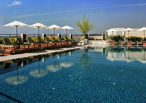 В гостинице есть ресторан, бар, тренажёрный зал, сауна, конференц-зал. Можно прогуляться по территории и в саду. И вы наверняка захотите отдохнуть у бассейна — он тут тоже есть. Причём открытый.