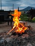 Когда наша группа возвращалась с речки, за нами увязался добродушный пёс чёрного окраса (скорее всего, не породистый, но напоминающий пастушью собаку). Потом мы очень сожалели, что не прогнали пса(((.